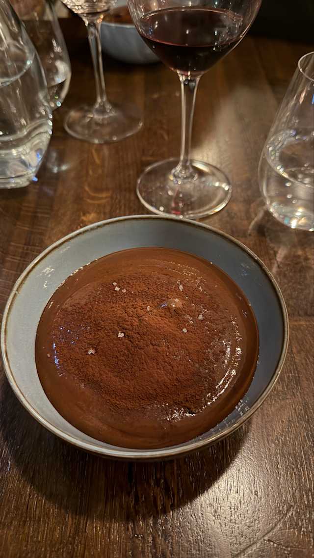 - Mousse au chocolat tiède, praliné, glace vanille, crumble