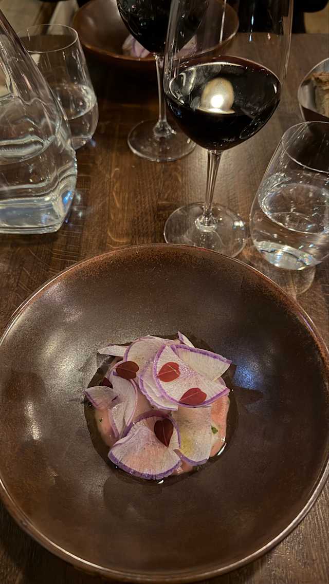 - Noix de st-jacques crues, radis, vinaigrette grenade, crème crue