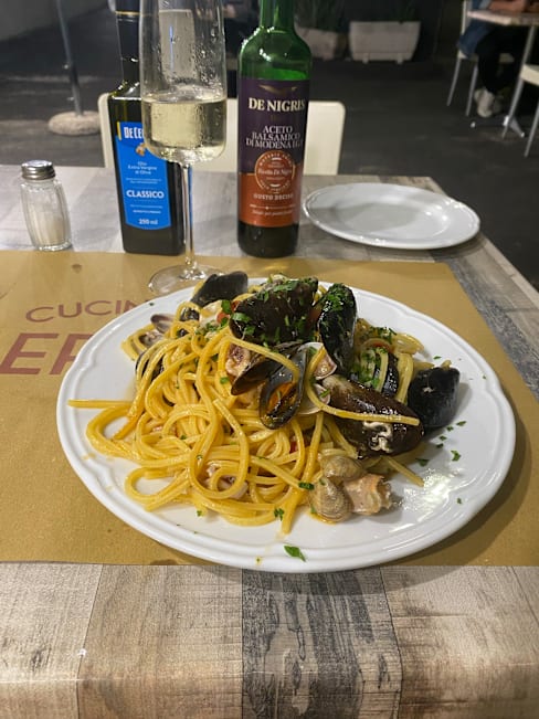 10/10⭐️⭐️⭐️⭐️⭐️ I honestly don’t understand the negative reviews — this was one of the best seafood pasta dishes I’ve ever had! Everything was incredibly fresh, the pasta perfectly al dente, and the flavors were absolutely delicious. I started with a classic tomato and burrata caprese, which was fresh, simple, and full of flavor — the perfect way to begin the meal. I was served in English without any problem, the wine was excellent, and I enjoyed every bite. I left the restaurant completely satisfied and would recommend it with my eyes closed. A true gem!
