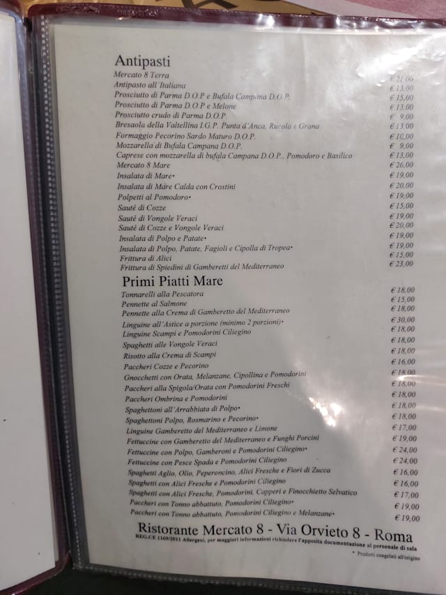 10/10My daughter and I had a really enjoyable evening at Mercato 8. The food was lovely and the service excellent. We arrived early in the evening so it was quiet at first. As the evening went on and more customers arrived, the atmosphere was warm and very welcoming. Would definitely visit again if I return to Rome.