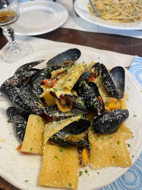 10/10⭐️⭐️⭐️⭐️⭐️ I honestly don’t understand the negative reviews — this was one of the best seafood pasta dishes I’ve ever had! Everything was incredibly fresh, the pasta perfectly al dente, and the flavors were absolutely delicious. I started with a classic tomato and burrata caprese, which was fresh, simple, and full of flavor — the perfect way to begin the meal. I was served in English without any problem, the wine was excellent, and I enjoyed every bite. I left the restaurant completely satisfied and would recommend it with my eyes closed. A true gem!