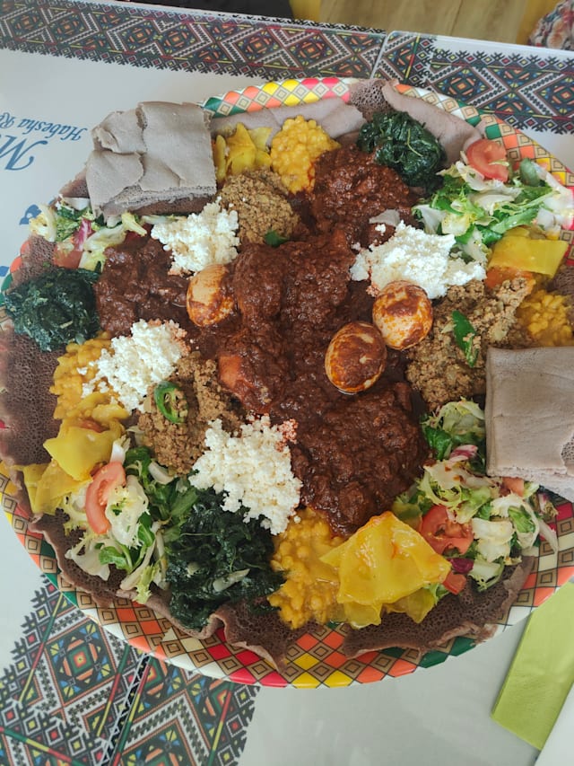 10/10The service was exceptional, making the dining experience truly memorable. We received generous portions that were great value for the price. The food was incredibly flavorful, and I left feeling completely satisfied with my meal. The restaurant’s interior design was also beautiful, creating a warm and inviting atmosphere, and the vibrant Ethiopian music playing in the background added to the authenticity of the experience. Overall, a wonderful meal and setting!
