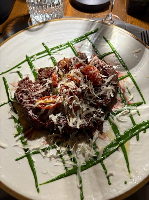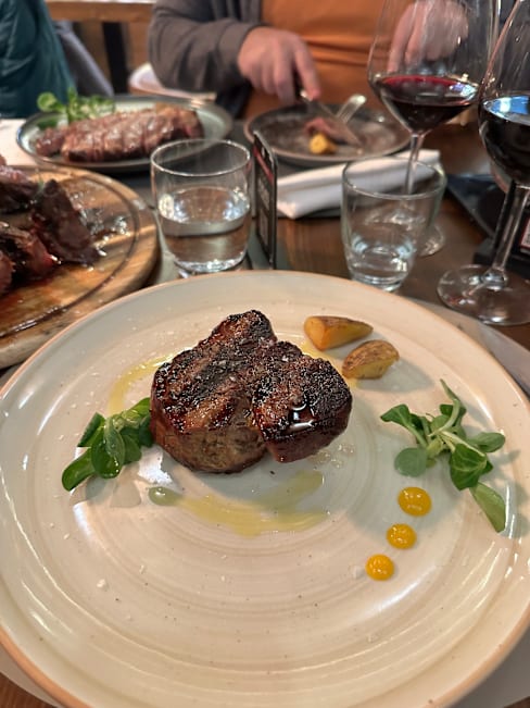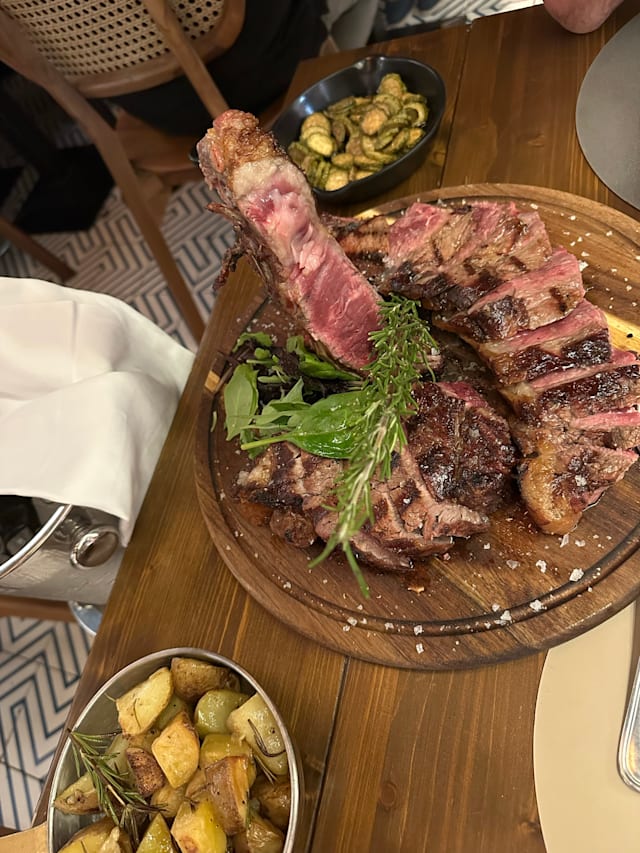 10/10We went for my husband’s birthday and had an excellent experience. The steaks are available for viewing/selecting in a display case near their half open kitchen. The butcher/steak chef was very knowledgeable about the meat and their ages, origins, and flavor palettes. The front of house staff were very attentive and knowledgeable on the menu and the wines available (very expansive selection). Considering it’s a highly touristic area (near Pompeii), we weren’t sure what to expect but it’s a truly high quality, upscale experience. We will definitely return.