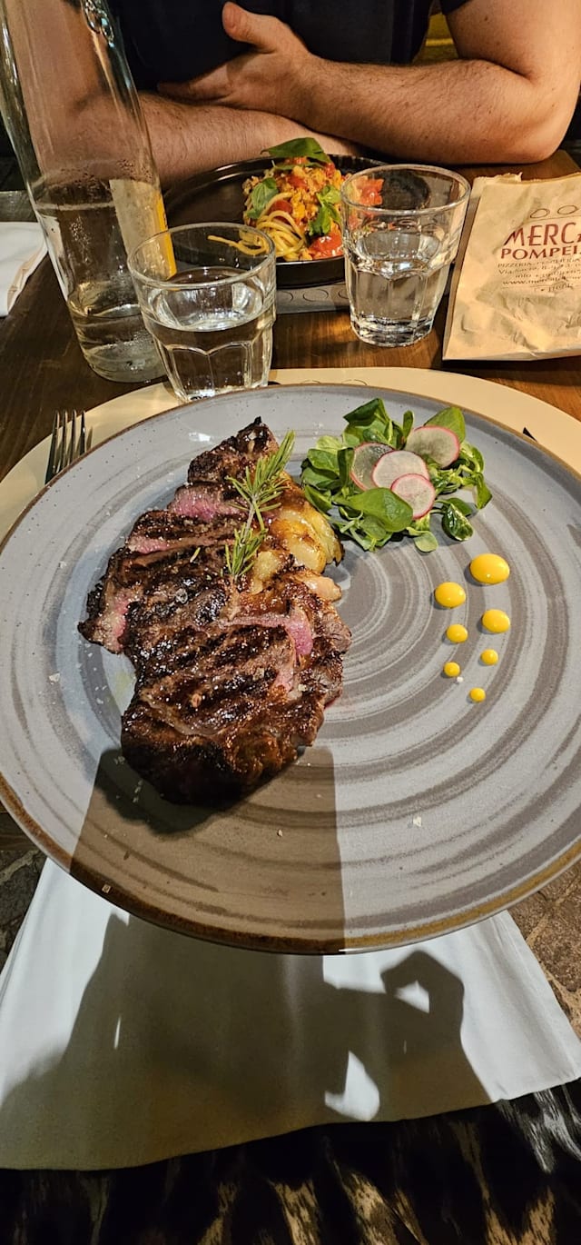 Ciao Dainis, grazie per la tua recensione e per il fantastico punteggio che ci hai assegnato. Siamo felici che tu abbia apprezzato la nostra bistecca di filetto. Selezioniamo con cura solo i migliori tagli di carne disponibili sul mercato e li cuociamo con maestria sulle griglie del nostro forno Josper, un autentico gioiello in cucina. Siamo lieti che il nostro impegno nel garantire qualità e gusto si sia riflesso nella tua esperienza culinaria. A presto! La Direzione Mercato Pompeiano