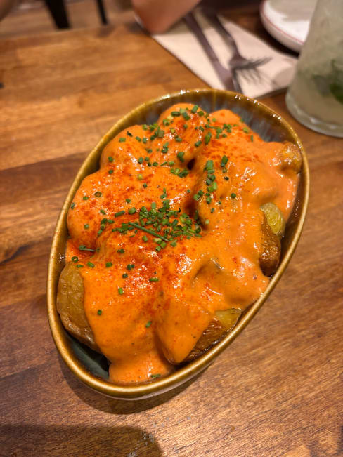 8/10Nice setting, modern, comfortable, easy to speak. Friendly waiters. The bravas were good but the arroz negro lacked taste, quite watery.