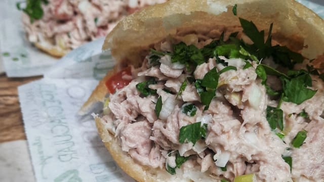 Tortitas de harina de maiz asadas o fritas rellenas de: tomate, aguacate, y jamón de cerdo macerado en especias, jugo de naranja y cerveza negra