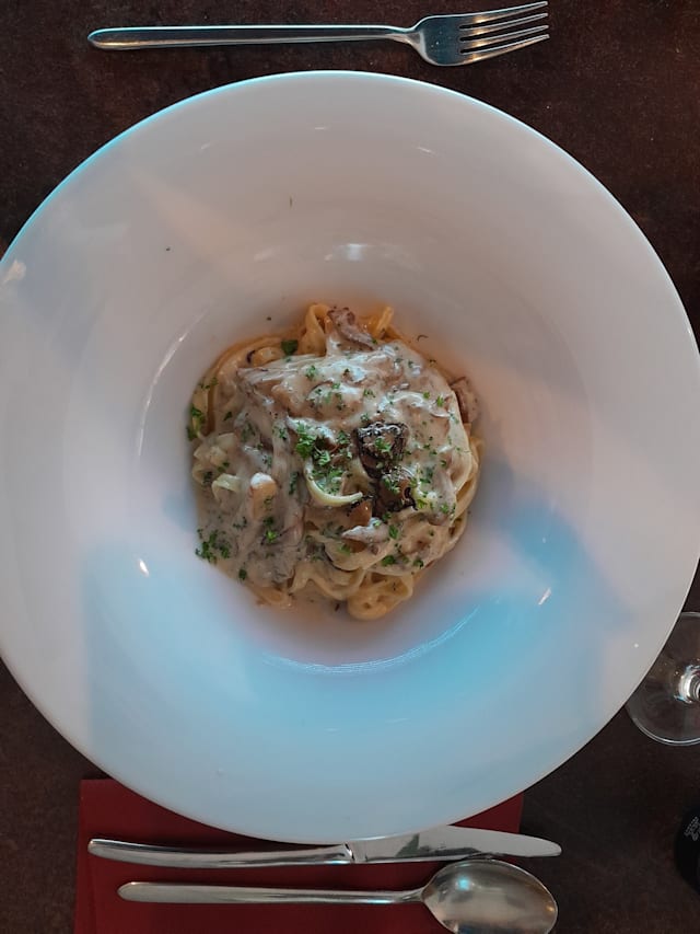 10/10Very nice fine cooking with agréable atmosphere, staff was very friendly and kind. Scampis with estragon crème sauce was very tasty! A place to go back. Many customers in small groups so not too noisy and volume of background music was perfect too.