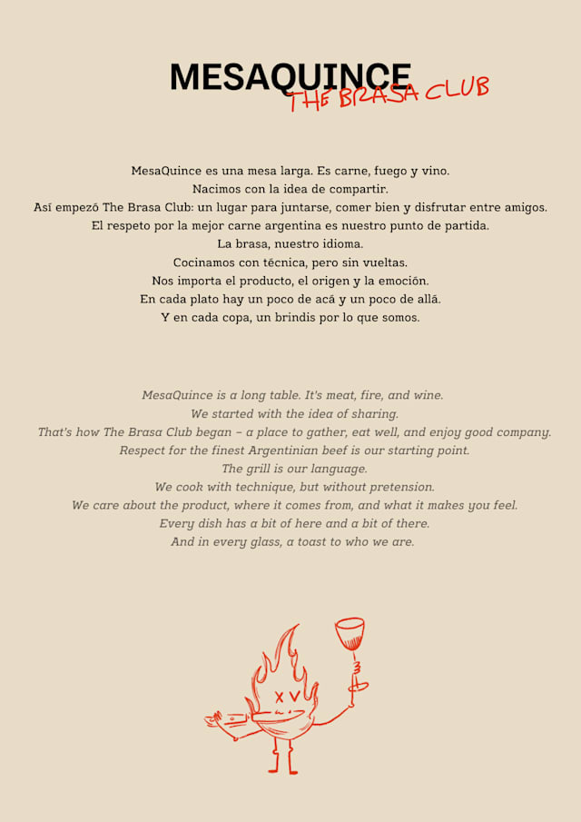 Mesaquince The Brasa Club is identified as offering argentinian cuisine.