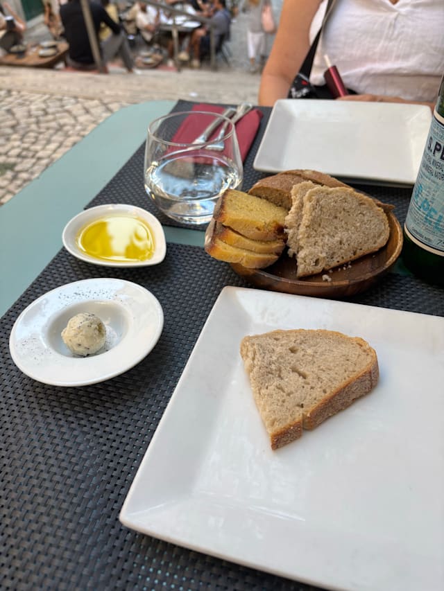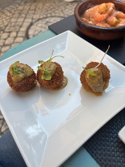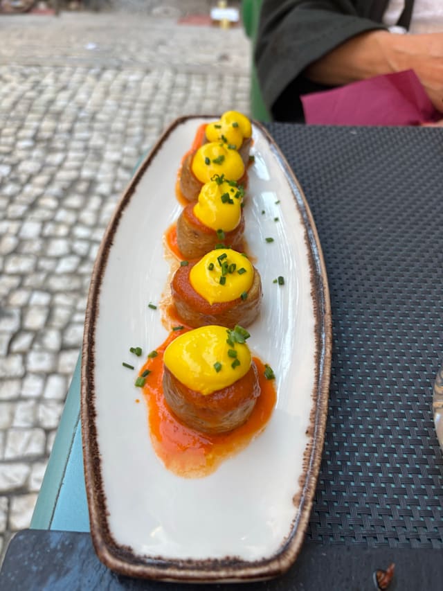 10/10Lovely spot in a stepped side street, with tables outside not too close to each other. Menu wasn’t too extensive with a wide range of dishes from smaller tapas plates through to full mains such as pig cheeks which were so tender and one of their long standing dishes from when the restaurant first opened. Sara looked after us wonderfully, recommended a dry white Portuguese wine that paired really well with the prawns and cheese parcels we had for starters, plus a red which was equally as good. Service was warm and friendly and at the perfect pace so as not to be rushed - all in all a lovely meal from an attentive and knowledgeable team