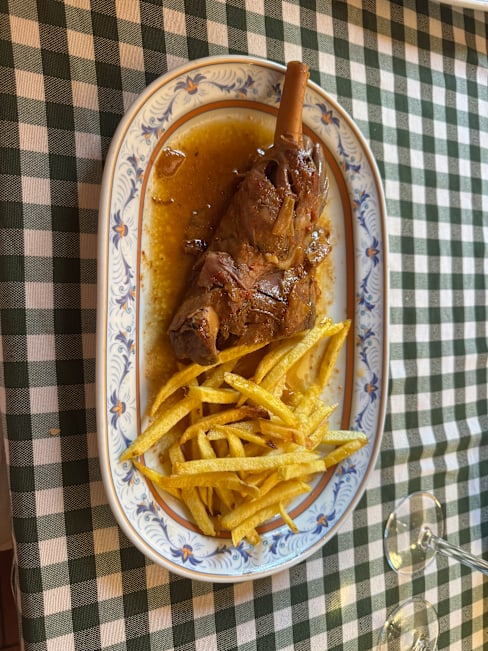 10/10Set in a historic building, with an attractive traditionally furnished, airy comedor, as well as a spacious terrace with a children's play area. Service prompt, helpful and efficient. Generous portion of excellent carpaccio de atun. good local sausage, and brilliant paletilla de cordero (very tender and served in its own juice). The Fork discount was part of the attraction, but the full prices were quite acceptable. Bottle of very drinkable house wine at 7euro also helped to keep the bill very reasonable indeed. We would return without the deal.