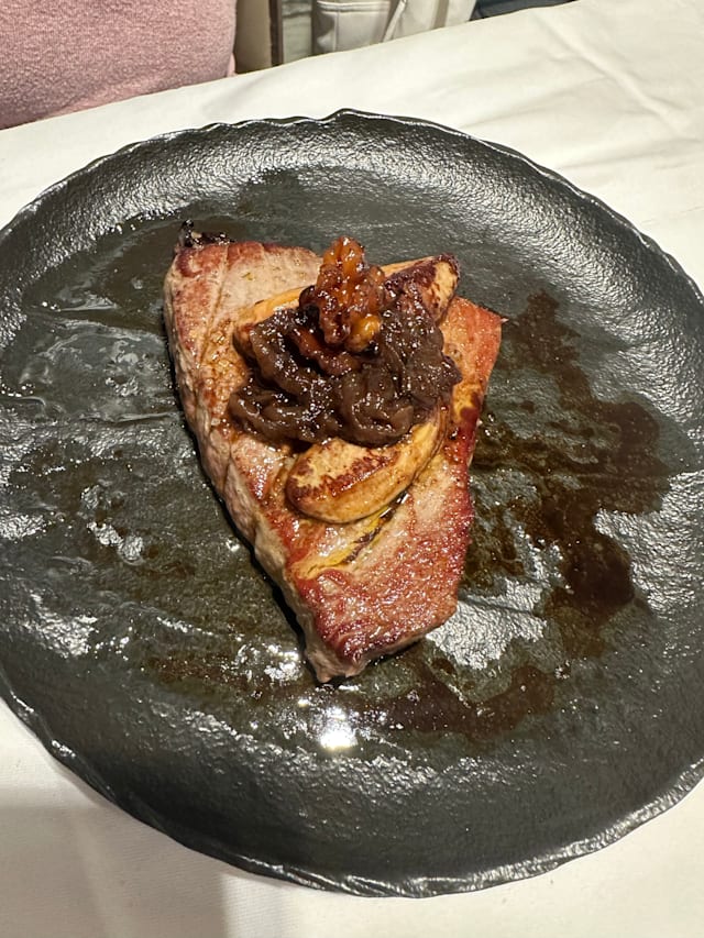 Solomillo de vaca rubia con foie, a la brasa de leña