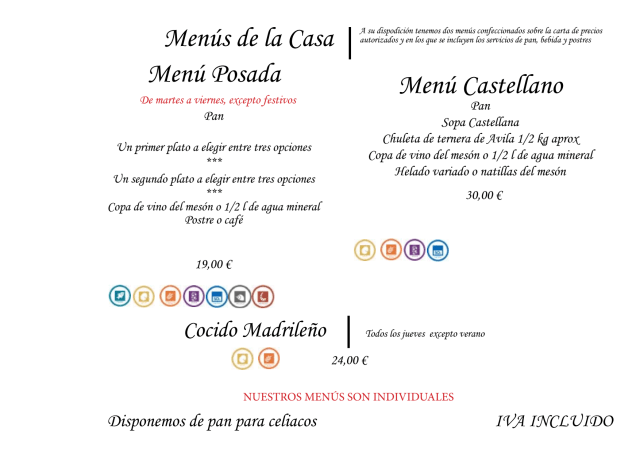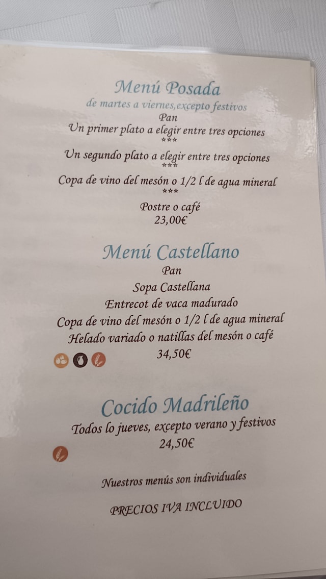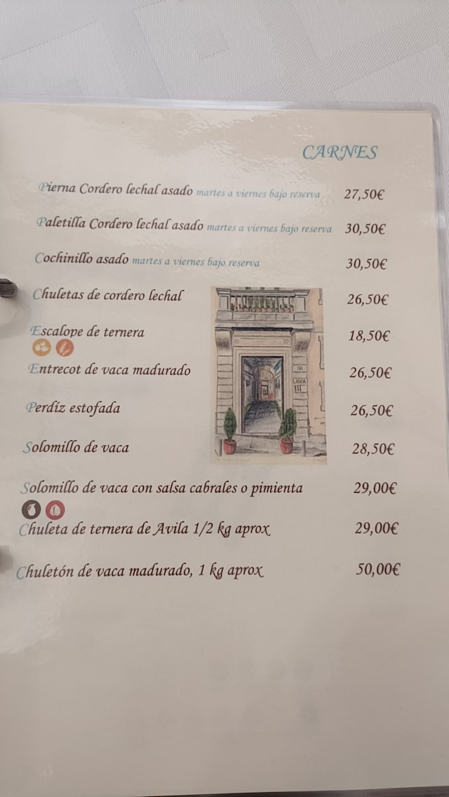 From CastilleEuropeanSpanishCodSuckling pigWinter foodBirthdayBookable terraceCommunionGood for a business lunchGood for familiesGood for groupsOutdoor diningSeminarTrendyWith friendsCheap eatsChristmasChristmas and New YearFather's DayMother's DayNew year's eveValentine's DayGluten freeAmerican ExpressCellarWifi