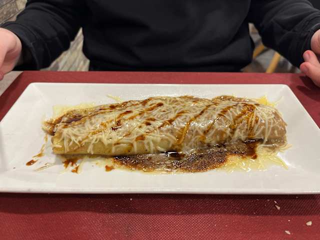 - Crepes rellenos de nutella con quenelle de vainilla