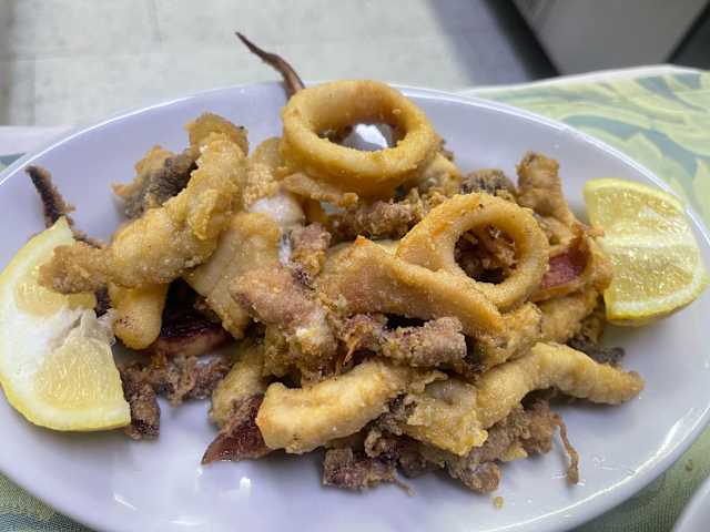 - Insalata di polpo, cocktail di gamberi, spada con cipolla in agrodolce, frittelle di bianchetti, bruschetta di alici marinate