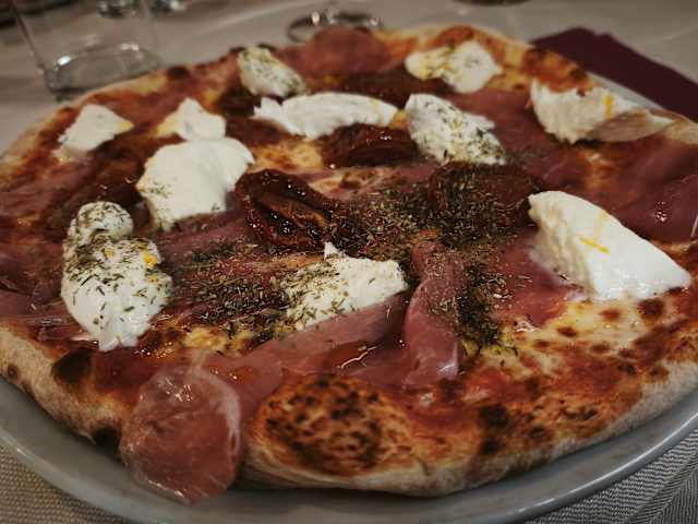 - Pizza Nobile (pomodoro, mozzarella, origano, burrata e petto d'oca)