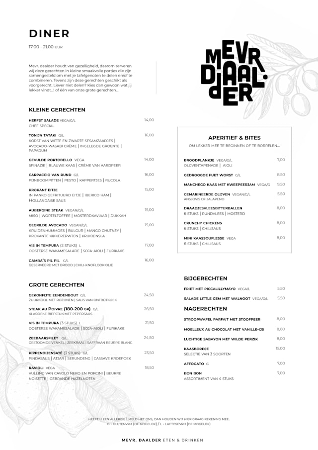 10/10Mevr Daalder is our favourite restaurant in the area. Good food and wine, kind service and a nice ambiance year round. We are very lucky to live nearby.