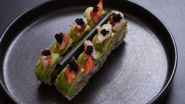 Tonno, avocado, tartare di tonno, maionese spicy, salsa sriracha e spezie togarashi