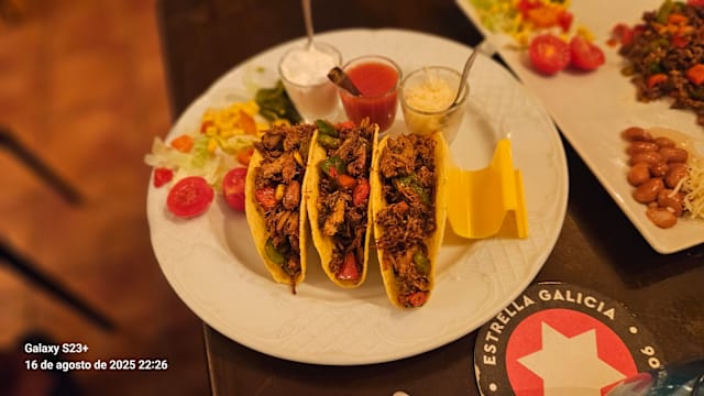 5.5/10Very nice staff, service was great, food was disappointing. I had veggie fajitas that looked like the small mixed frozen veg packet from a supermarket, flavours not good and portion was small. I wouldn’t go back