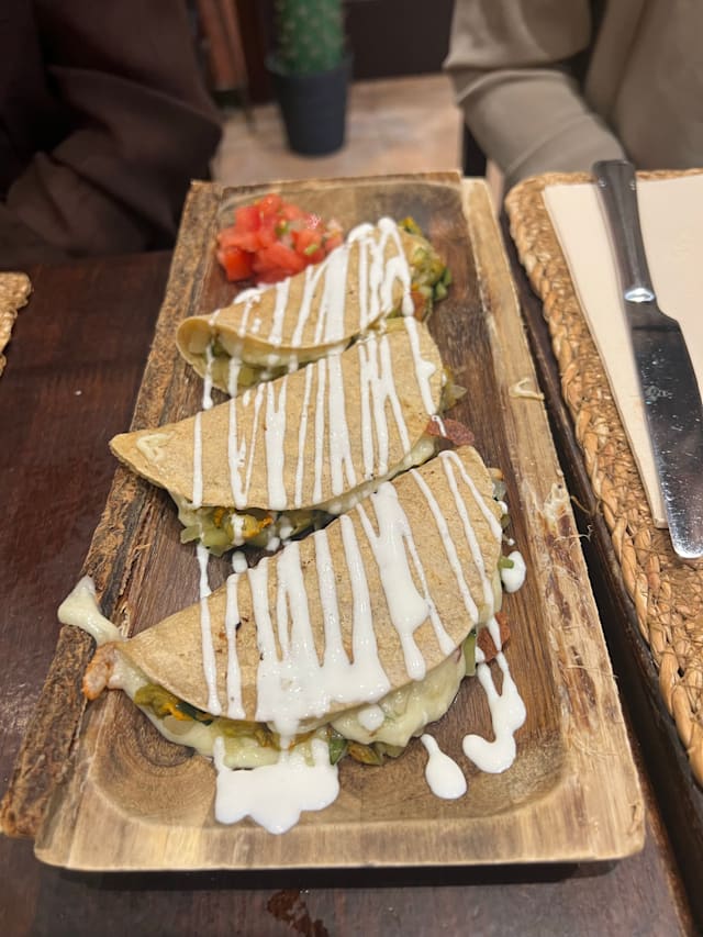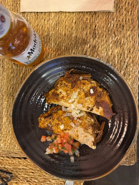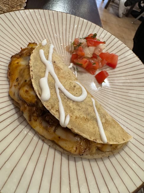 9.5/10+1A small slice of Mexico in Madrid Traditional home made mexican cuisine, full of aromas and spices. The staff were incredibly friendly and welcoming giving detail of the dishes, and their own recommendations. We had tlacoyos, quesabirria as starters. Lengua adobada, birria de ternera, and closed the lunch with a delicious pastel de elote???????? Under “sopas” I ordered a pasta con calabaza expecting to have a soup ???? but it happened to be a delicious pasta but not what I was expecting ???????? it happens that in Mexico you can have dry or liquid soup ???????? I will return for sure