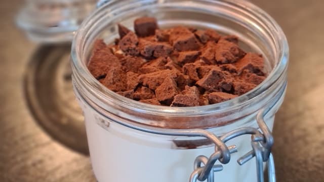 Mi-cuit au chocolat, boule de glace vanille, sauce chocolat