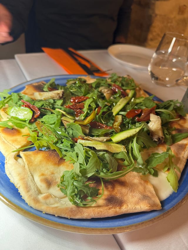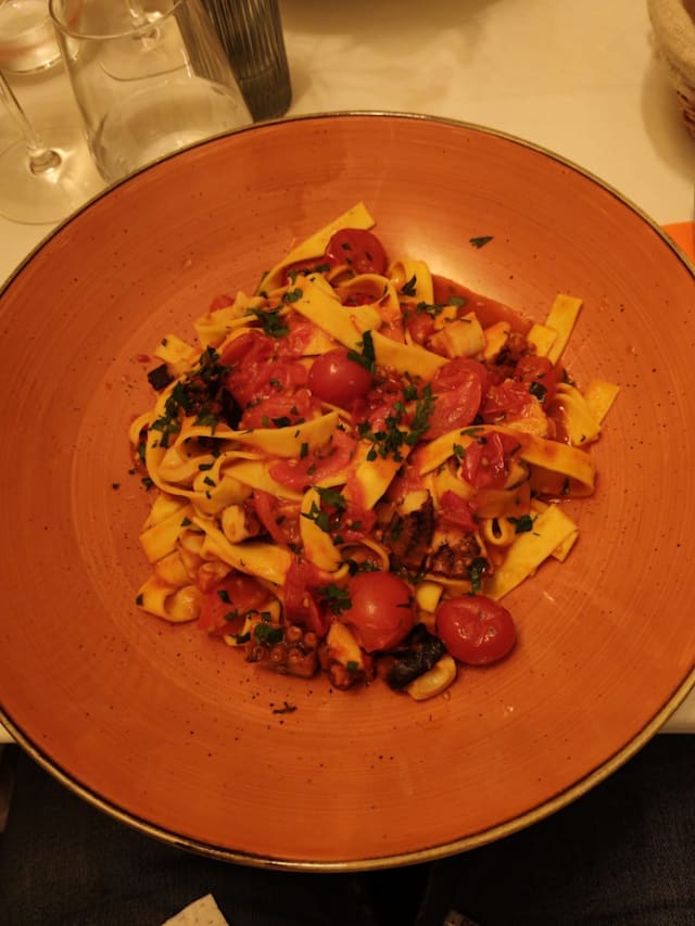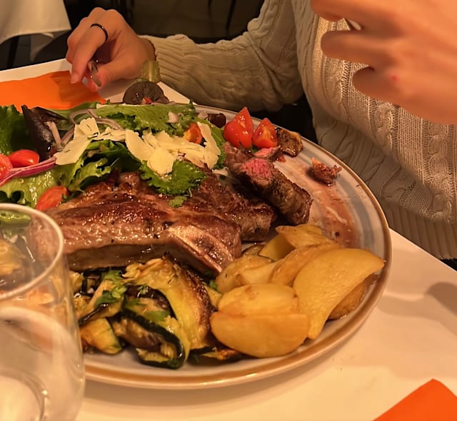 This was an amazing find!!! Food was amazing! We 4 are from Texas and had a cattle ranch, so quite picky about beef. My husband was served a huge, thick, tender, flavorful steak! He shared and we were all impressed! The lemon ravioli was delicious, sea bass great, and the vegetarian focaccia appetizer was SO delicious!! The service was perfect, the ambience lovely. We all thought it was the best meal on our trip!! The 30% discount was great too!! We HIGHLY recommend!!!!!