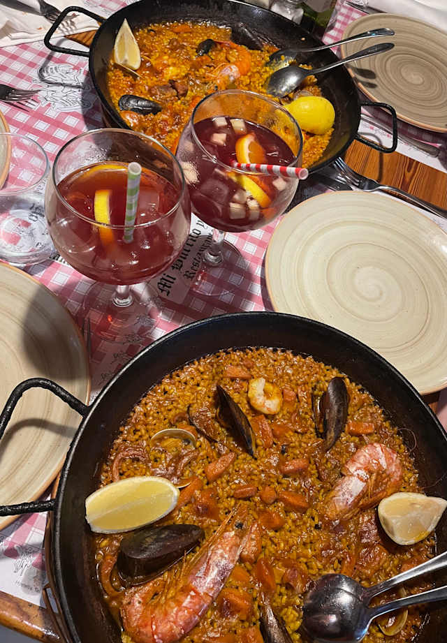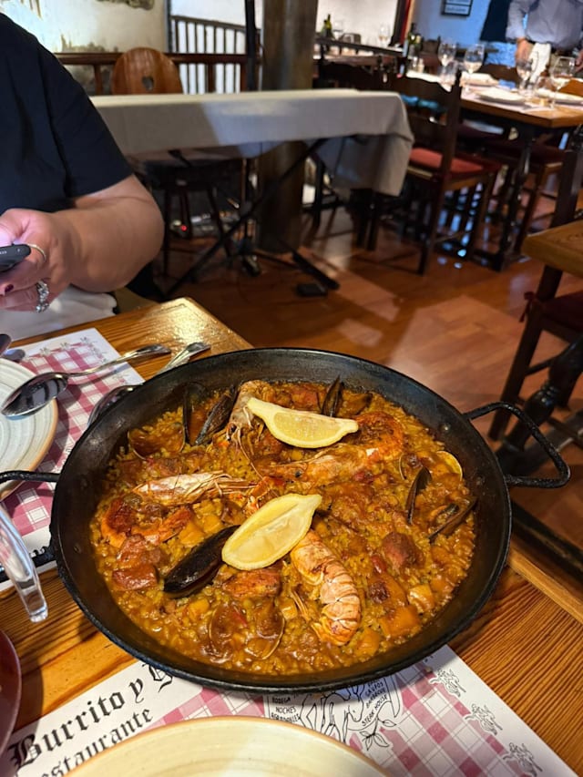 5.5/10They did not apply the full discount even though we were three people and took a paella for three, two. desserts and sangria. The desserts were burned and the waiters were very rude.