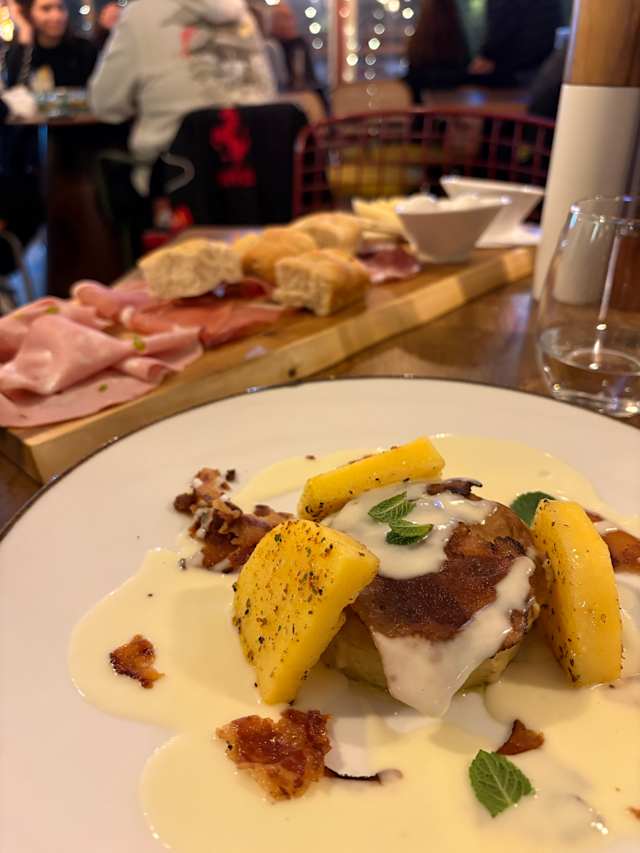 - Pinsa mortadella, stracciatella e granella di pistacchio