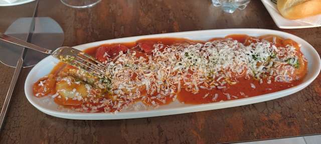 - Panciotti di melanzana e scamorza con datterini, ricotta salata e pesto di basilico