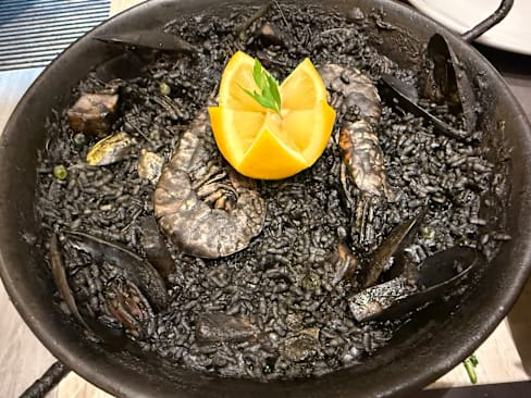 10/10Last night in Barcelona and we wanted to get our paella fix before we went home to the US. We had some tapas and drinks to start. We ordered two types of paellas for our main dish. Seafood Paella with chicken, squid, clams, mussels, prawns and Black rice squid, clams, mussels, prawns, squid ink smothered in a garlic aioli. Both were great but the black rice paella was to die for!! It was a great ending to our trip.