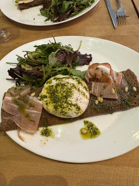 10/10I’m a vegan, so please note that Nutella is NOT vegan. I’m not sure if their sweet crepe is either, although I know their galette is, so please check and confirm with them first! That being said, I had a vegan galette with what looked like the entire green forest on top, to the point I was doubting the taste…. But I was wrong! It was super delicious and flavorful!!! So, so yummy. Would recommend anyone to go and try it out! They can make some of the other galettes vegan as well!