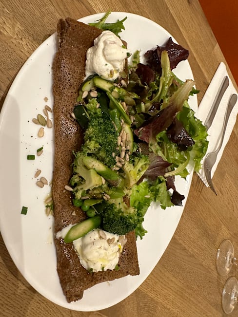 10/10I’m a vegan, so please note that Nutella is NOT vegan. I’m not sure if their sweet crepe is either, although I know their galette is, so please check and confirm with them first! That being said, I had a vegan galette with what looked like the entire green forest on top, to the point I was doubting the taste…. But I was wrong! It was super delicious and flavorful!!! So, so yummy. Would recommend anyone to go and try it out! They can make some of the other galettes vegan as well!