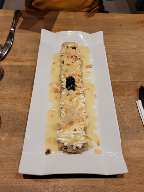 8.5/10If you are interested in traditional crepes let the water know. Some of the non-traditional galettes with non-traditional fillings are deconstructed with some of the filling served on top. For our second course we asked for a traditional crepe suzette with grand marnier and it was excellent.