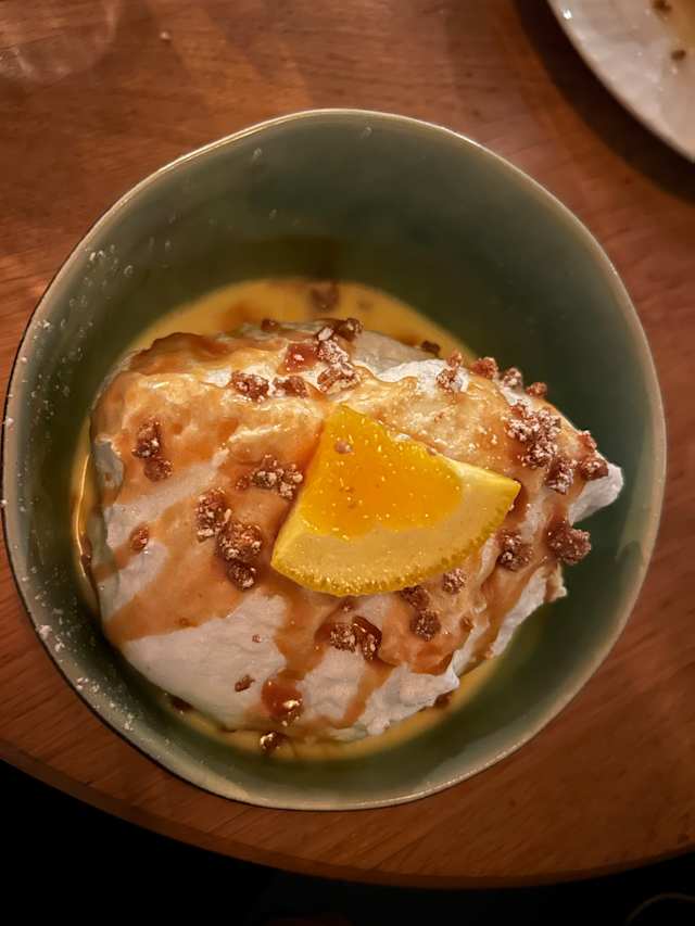 - Cassolette de ravioles de royans AOP gratinées et son velouté du moment.
