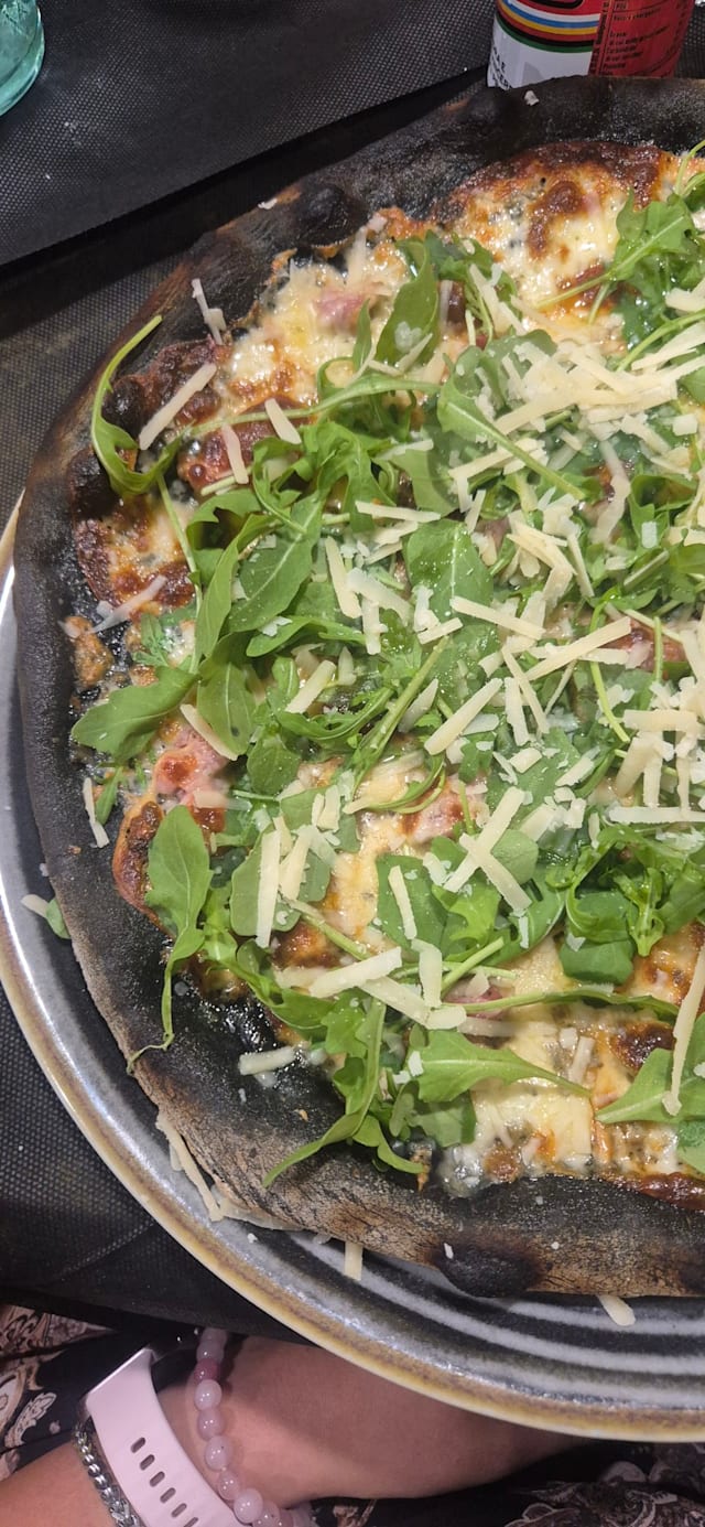 Hamburger 150g stracchino, insalata, uovo al tegamino, pancetta croccante e peperoni
