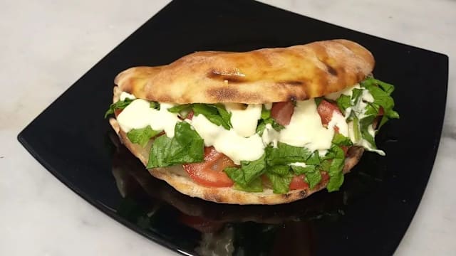 Salsiccia, melanzane, maionese fatta in casa e rucola