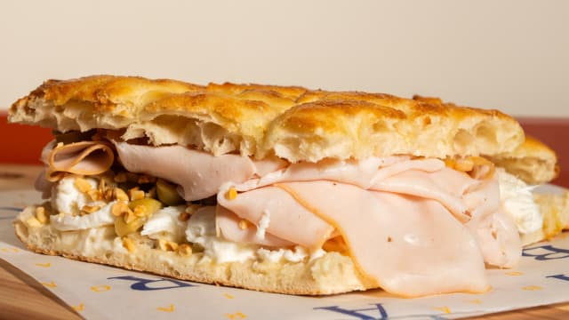 Tacchino, mozzarella, maionese, olive a rondelle e granella di nocciole