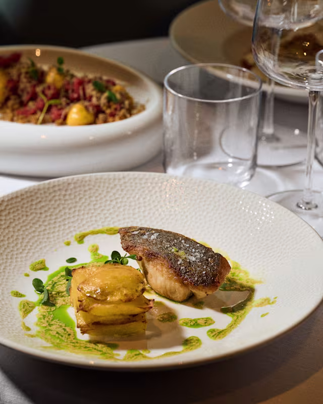 - Il filetto di ombrina cotto a bassa temperatura e arrostito con salsa alla mugnaia e pavè di patate