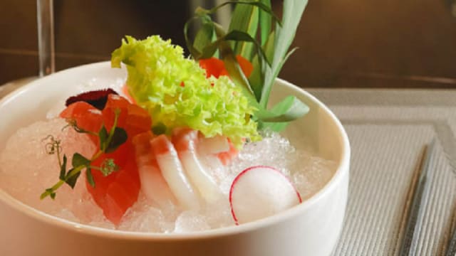 Bignè di riso, salmone scottato, latte condensato, briciole di frittura, salsa teriyaki/ max 1 porzione a testa