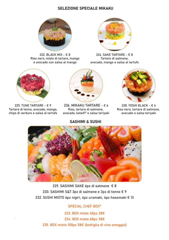 menu all you can eat no sconto€25 per guest