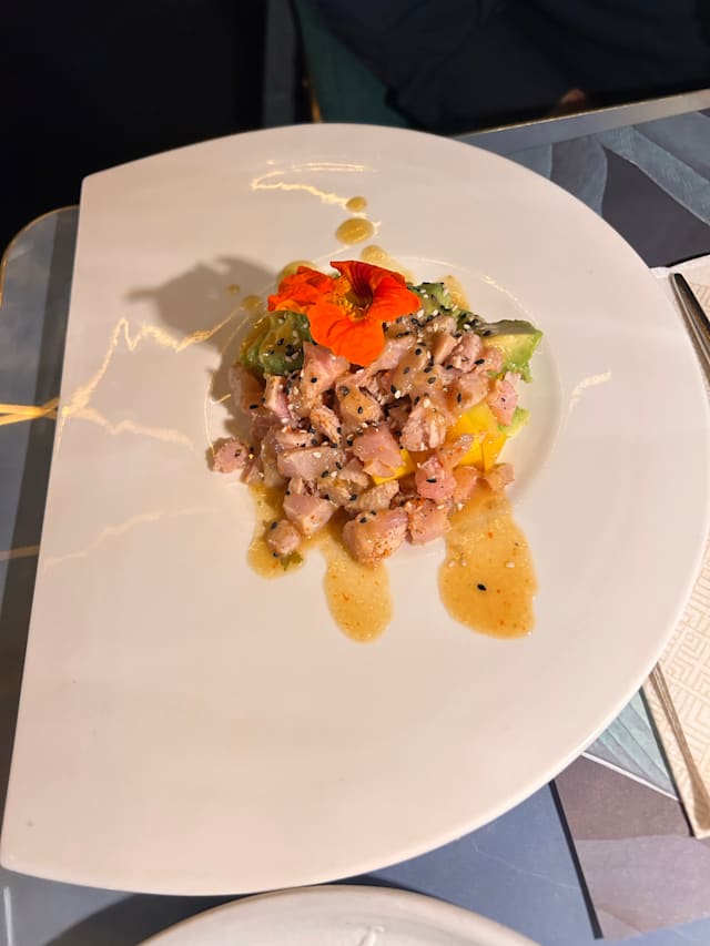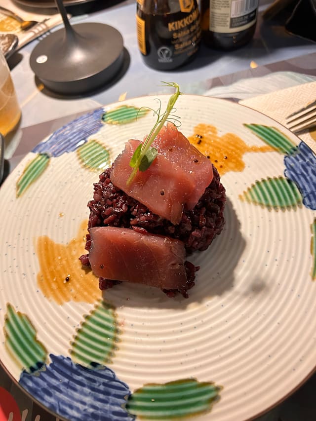 10/10super place with super dishes: despite the “unlimited” menu, many dishes are made almost according to haute cuisine standards - unusual combinations and a riot of flavors! I especially want to mention the dish, the name of which I unfortunately did not write down, but I remembered the ingredients: salmon, tuna and swordfish, shrimp, laid on a bed of stracciatella and seasoned with a sauce based on olive oil and basil