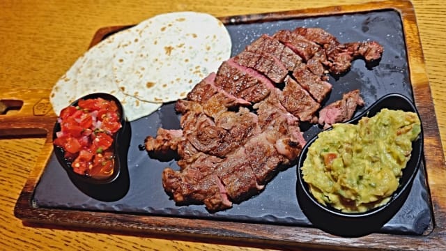 Tortillas, lomo alto madurado a la parrilla acompañado de guacamole casero, pico de gallo