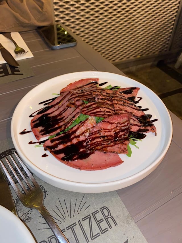 9/10The starters were 1st class. Definitely have one of their starters. We were there for the Italy Belgium UEFA game which they had in a big screen with full tables. Service was still friendly and relaxed even when distracted. Good atmosphere.