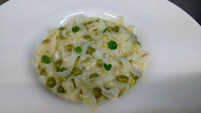 Risotto con piselli e tagliatelle di seppia (minimo 2 porzioni)