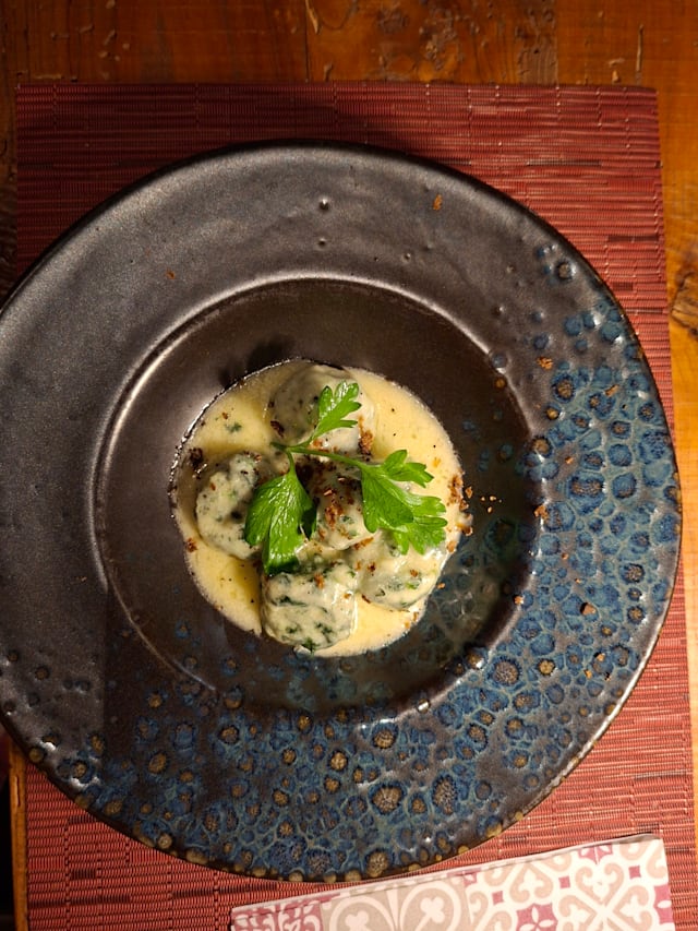 Gnudi Ricotta e Spinaci con crema di Salvia e Tartufo Nero