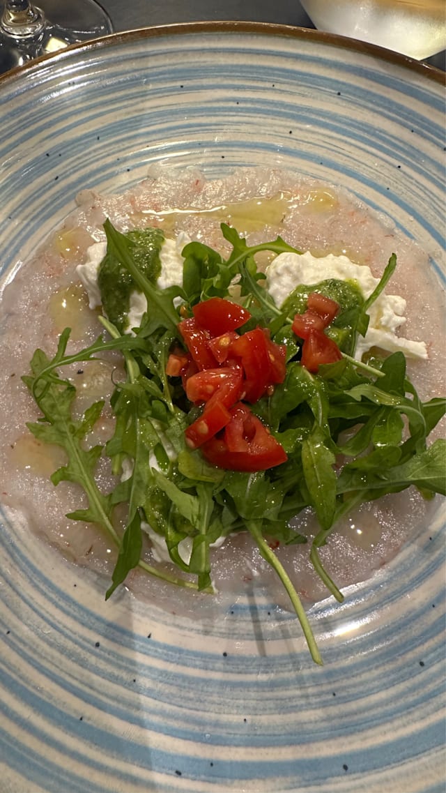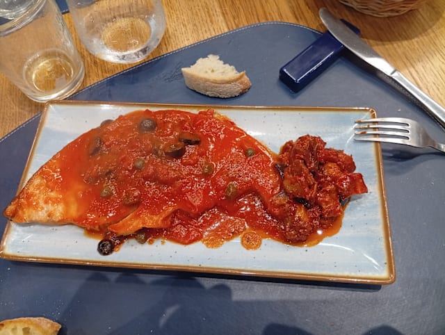 pomodoro, fiordilatte campano, moscardini alla luciana, olive nere, capperi.