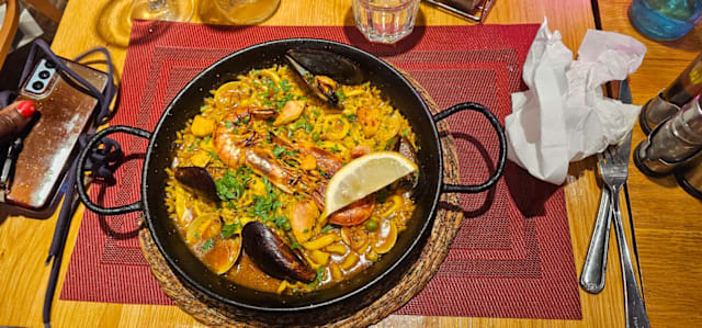 10/10Excelent food and service .I visited this place amazing atmosphere .paella and seafood plater fully loaded with seafood and very tasty . Highly recommended .