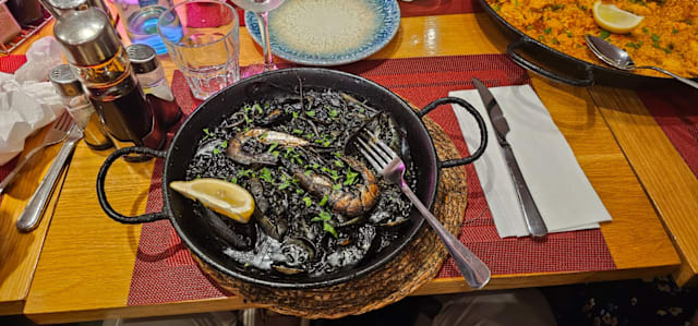 7/10The loud child beside us was awful. The octopus and grilled squid tasted old. The paella was very good but only had 3 muscles, cubed calamari, and one shrimp.
