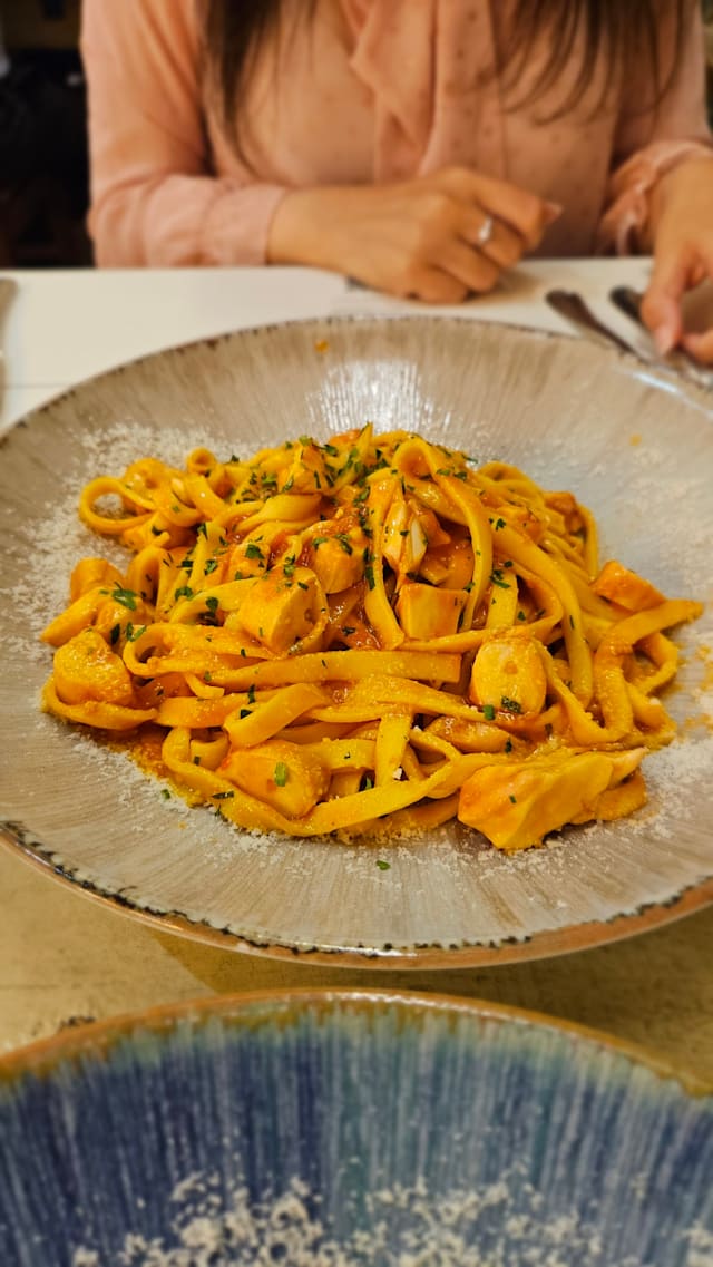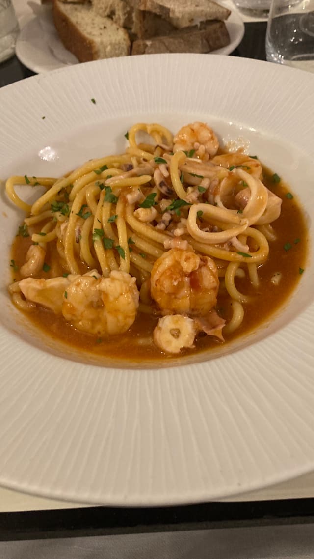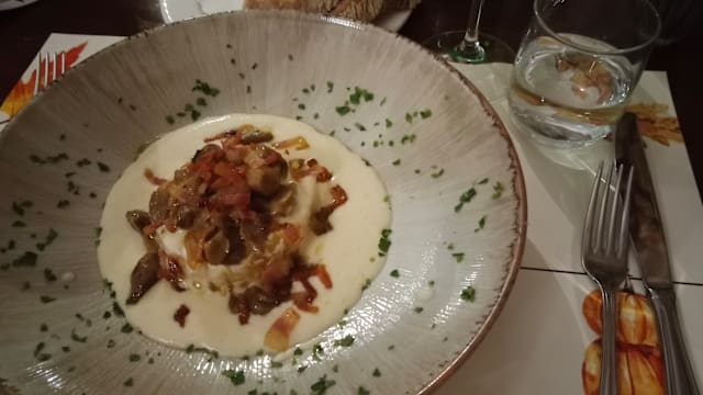 7.5/10A bit off the beaten track but worth passing by when in the area. Followed the recommendation of the waiter and took local trout, first as a starter on salad and then with pasta in a tomato and black olive sauce, accompanied by the white house wine (which was served generously). Didn't regret the choice!