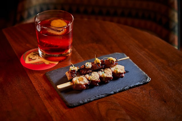 - “Frango assado” com creme de abacate e requeijão fumado, piripiri e limão (2 un.)