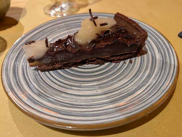 - Crema di pecorino, guanciale croccante, tuorlo grattugiato e pepe di melo affumicato